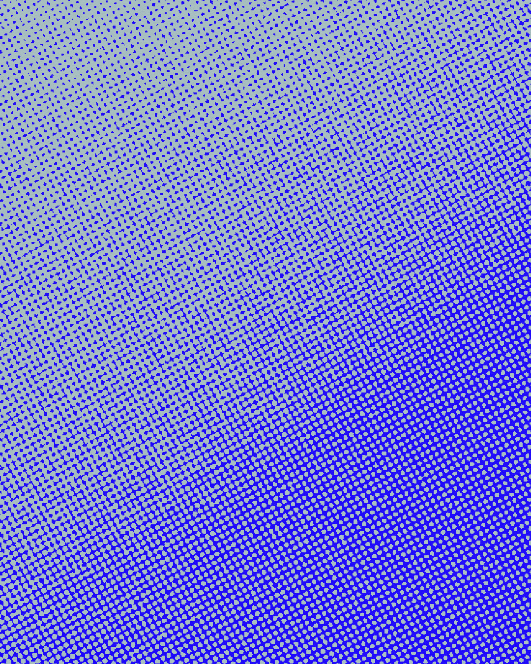 In his work, he focuses on the contrast between pop-colored and halftone graphics that seem rather out of time. A mixture of emotion and technique. The textures form a gradient at a distance, really break upon closer inspection, and come to life on large format prints.