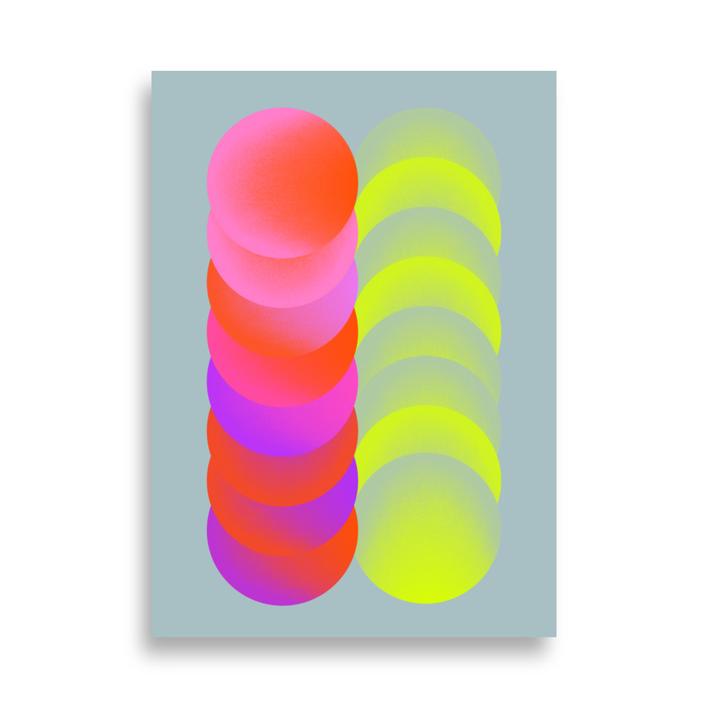 In his work, he focuses on the contrast between pop-colored and halftone graphics that seem rather out of time. A mixture of emotion and technique. The textures form a gradient at a distance, really break upon closer inspection, and come to life on large format prints.