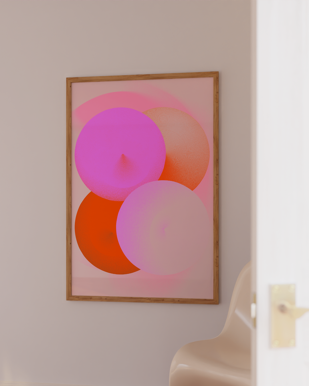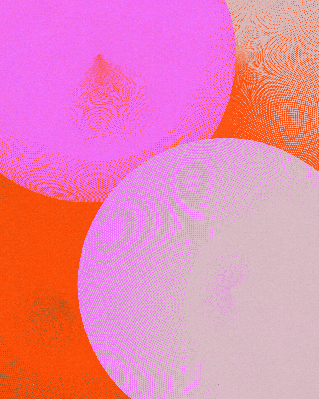 In his work, he focuses on the contrast between pop-colored and halftone graphics that seem rather out of time. A mixture of emotion and technique. The textures form a gradient at a distance, really break upon closer inspection, and come to life on large format prints.