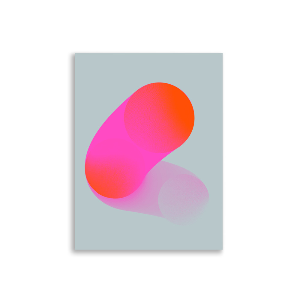 In his work, he focuses on the contrast between pop-colored and halftone graphics that seem rather out of time. A mixture of emotion and technique. The textures form a gradient at a distance, really break upon closer inspection, and come to life on large format prints.