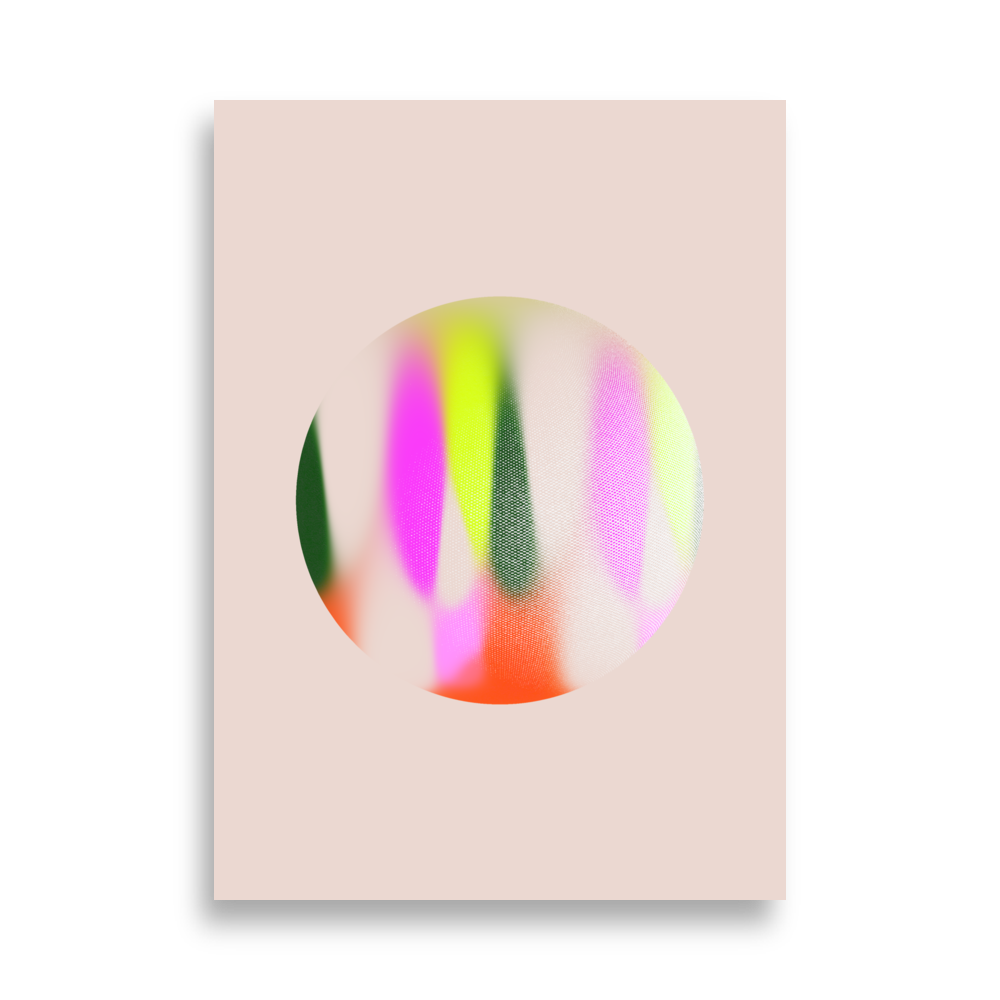 In his work, he focuses on the contrast between pop-colored and halftone graphics that seem rather out of time. A mixture of emotion and technique. The textures form a gradient at a distance, really break upon closer inspection, and come to life on large format prints.