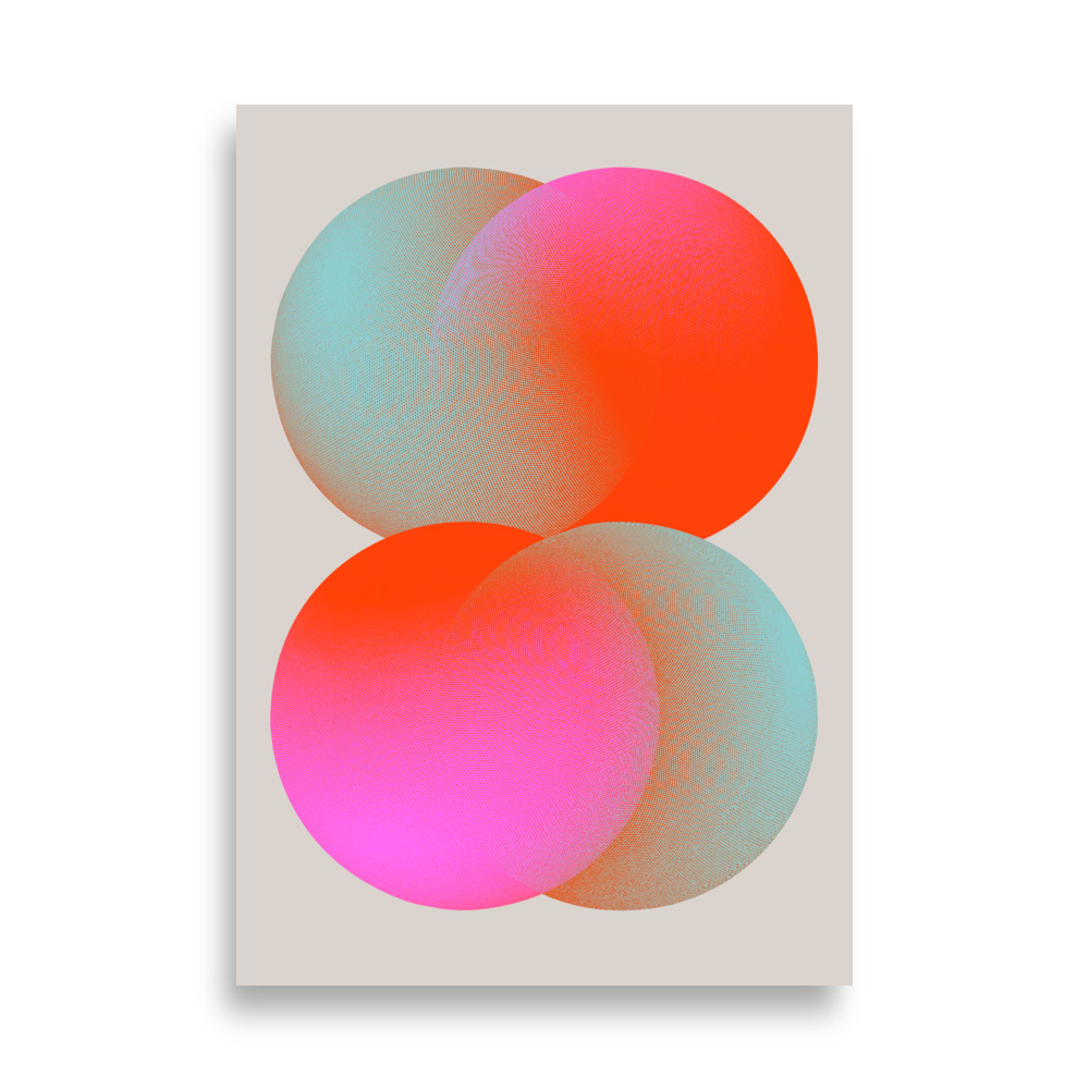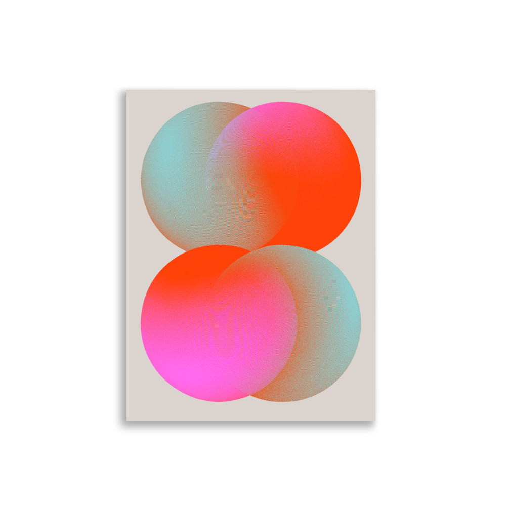 In his work, he focuses on the contrast between pop-colored and halftone graphics that seem rather out of time. A mixture of emotion and technique. The textures form a gradient at a distance, really break upon closer inspection, and come to life on large format prints.