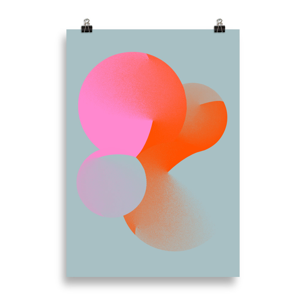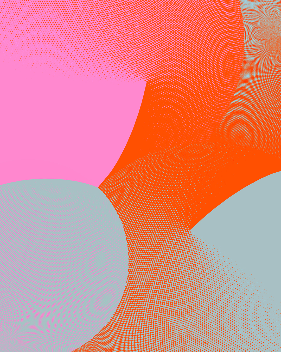 In his work, he focuses on the contrast between pop-colored and halftone graphics that seem rather out of time. A mixture of emotion and technique. The textures form a gradient at a distance, really break upon closer inspection, and come to life on large format prints.