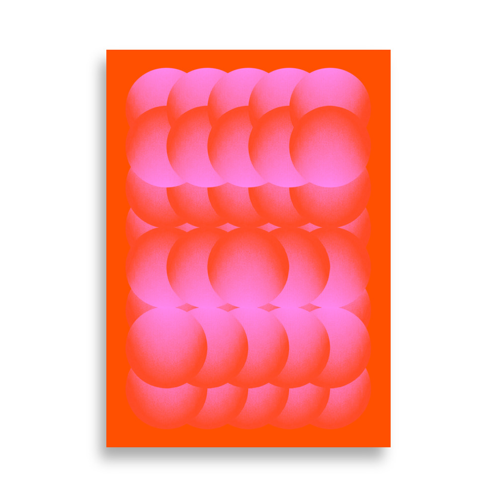 In his work, he focuses on the contrast between pop-colored and halftone graphics that seem rather out of time. A mixture of emotion and technique. The textures form a gradient at a distance, really break upon closer inspection, and come to life on large format prints.