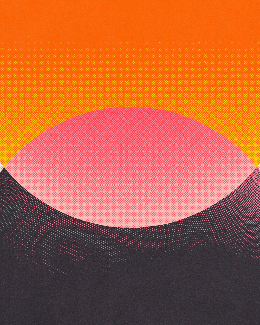 In his work, he focuses on the contrast between pop-colored and halftone graphics that seem rather out of time. A mixture of emotion and technique. The textures form a gradient at a distance, really break upon closer inspection, and come to life on large format prints.