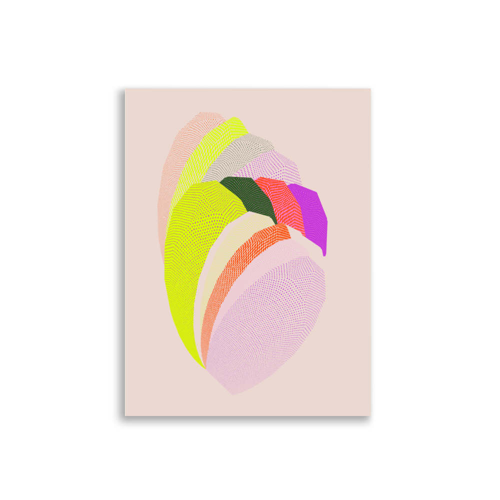 In his work, he focuses on the contrast between pop-colored and halftone graphics that seem rather out of time. A mixture of emotion and technique. The textures form a gradient at a distance, really break upon closer inspection, and come to life on large format prints.